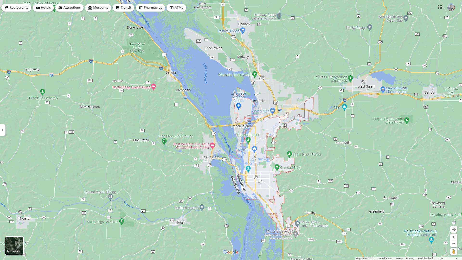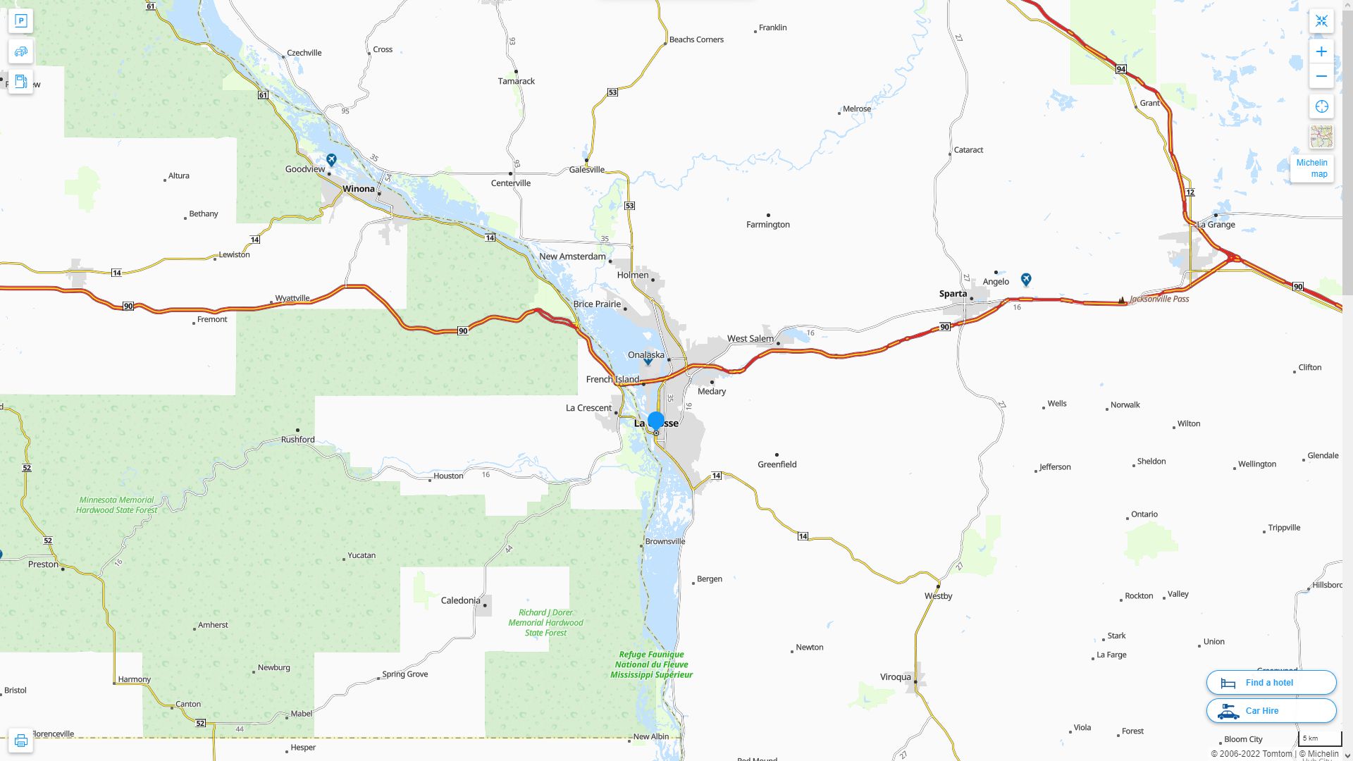 Navigate La Crosse, Wisconsin Map, map of La Crosse, La Crosse Wisconsin regions map, La Crosse satellite image, towns map, road map of La Crosse.