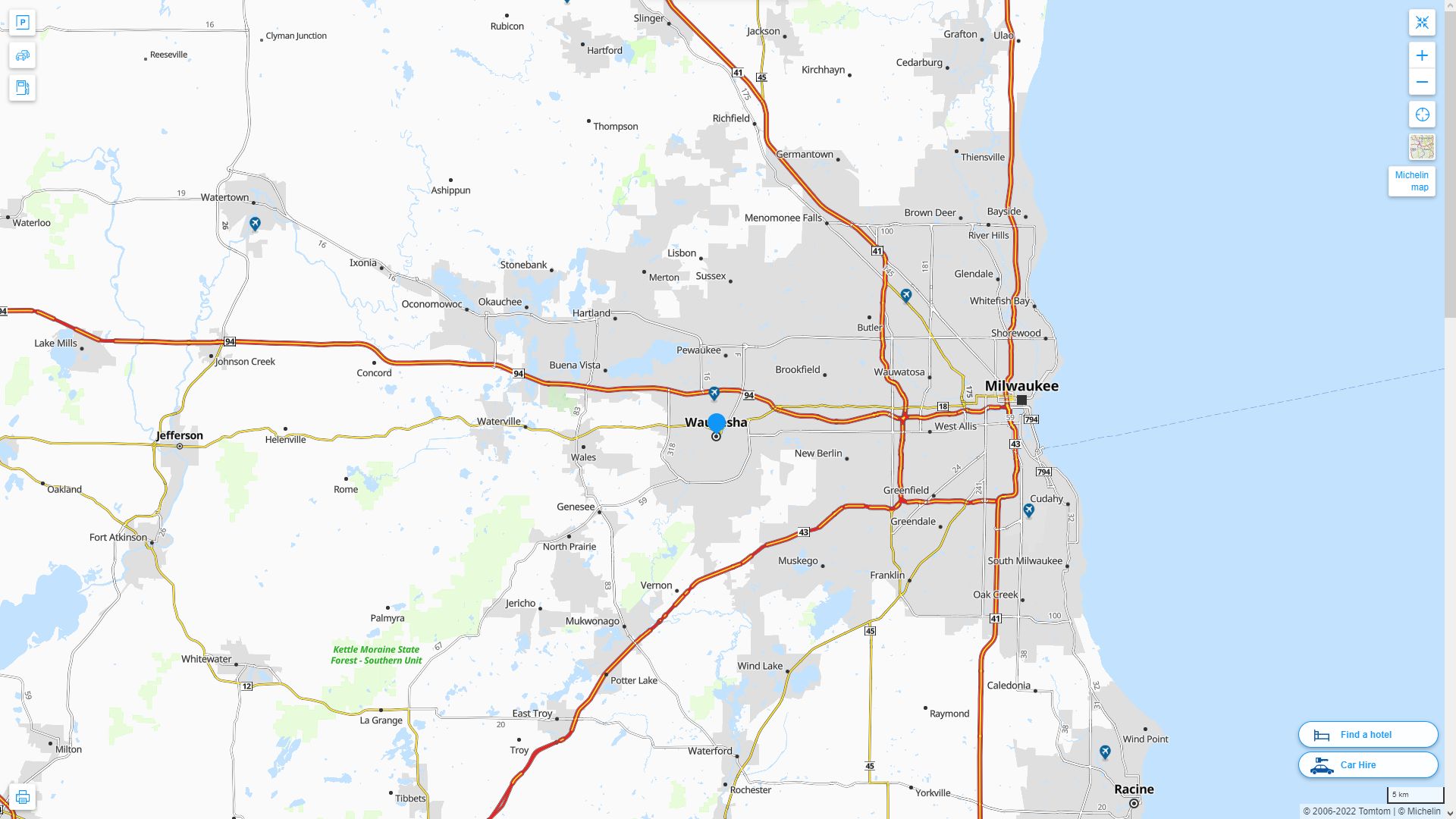 Navigate Waukesha, Wisconsin Map, map of Waukesha, Waukesha Wisconsin regions map, Waukesha satellite image, towns map, road map of Waukesha.