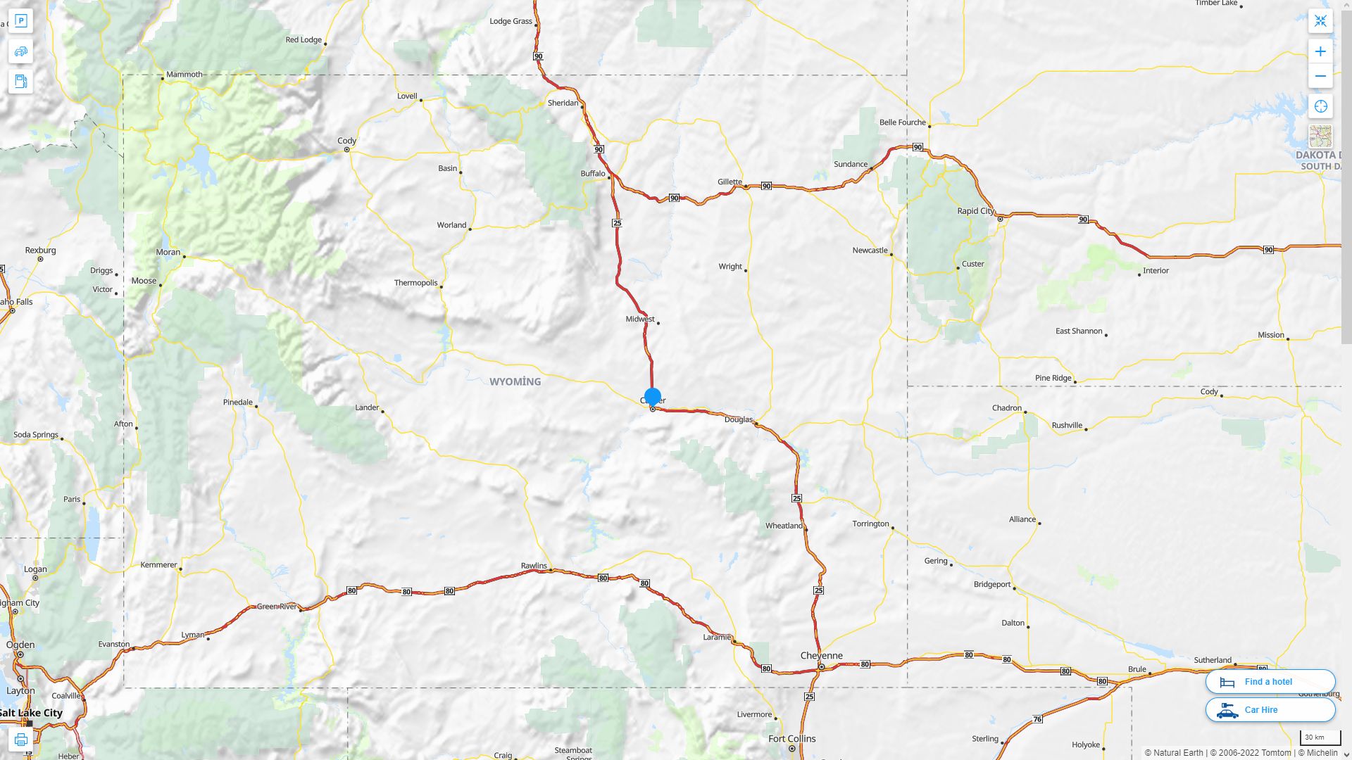 Navigate Casper, Wyoming Map, map of Casper, Casper Wyoming regions map, Casper satellite image, towns map, road map of Casper.