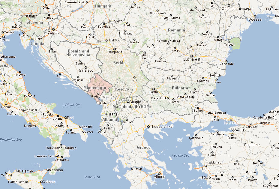 FORMER YUGOSLAVIA MONTENEGRO MAP