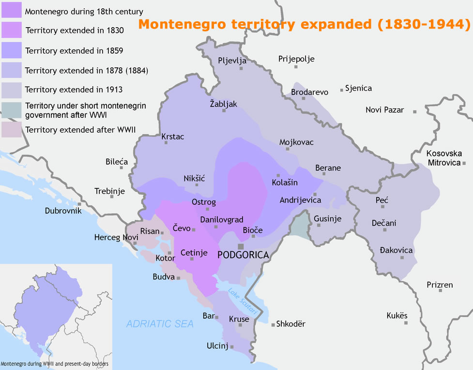 MONTENEGRO TERRITORY EXPANDED 1830 1944