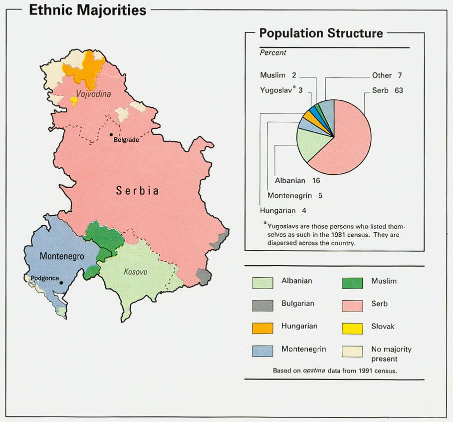 SERBIA MONTENEGRO ETHNIC MAP 1993