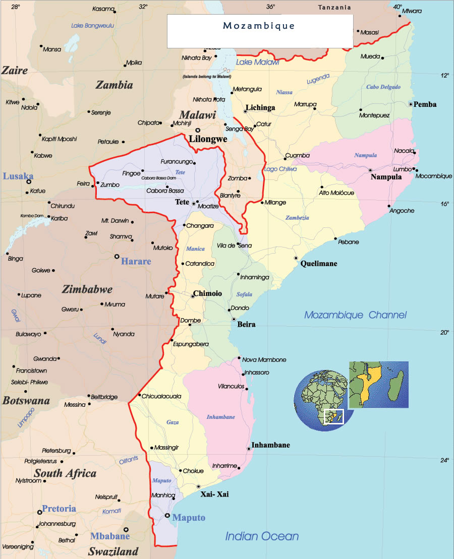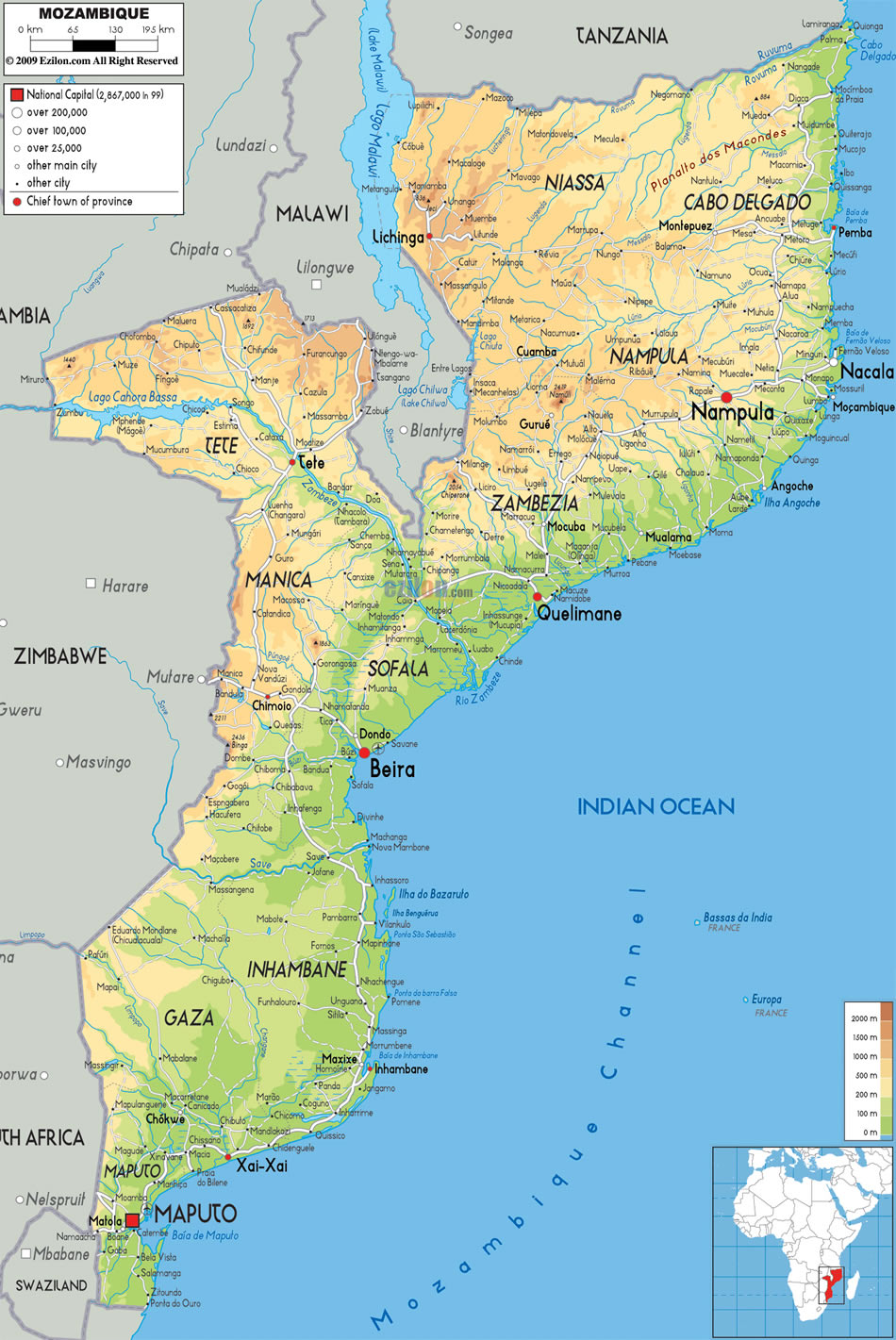 Mozambique has a population of 22,894,000 people, Mozambique's capital city is Maputo and largest city Maputo.