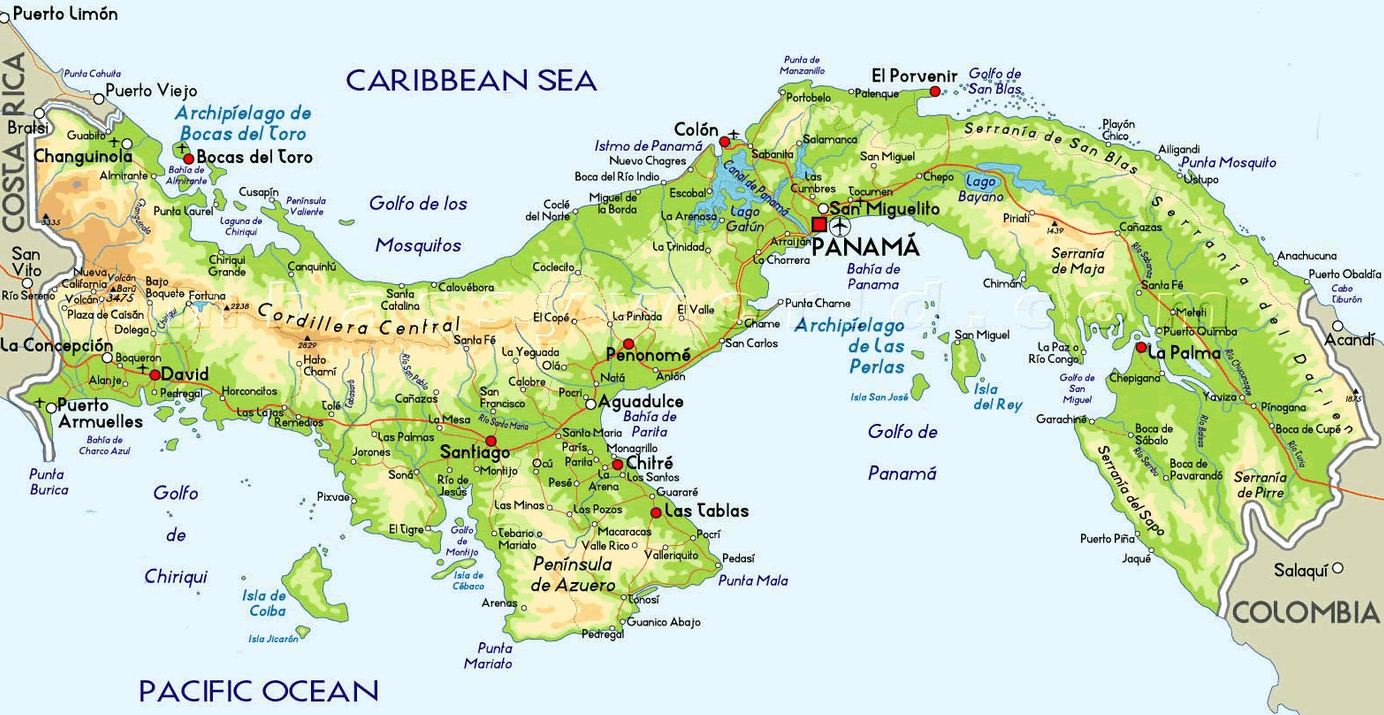 With interactive Panama Map, view regional highways maps, road situations, transportation, lodging guide, geographical map, physical maps and more information. On Panama Map, you can view all states, regions, cities, towns, districts, avenues, streets and popular centers' satellite, sketch and terrain maps.