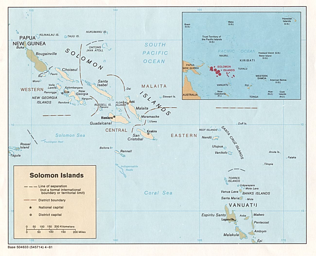 Solomon Islands has a population of 523,000 people, Solomon Islands's capital city is Honiara and largest city Honiara.