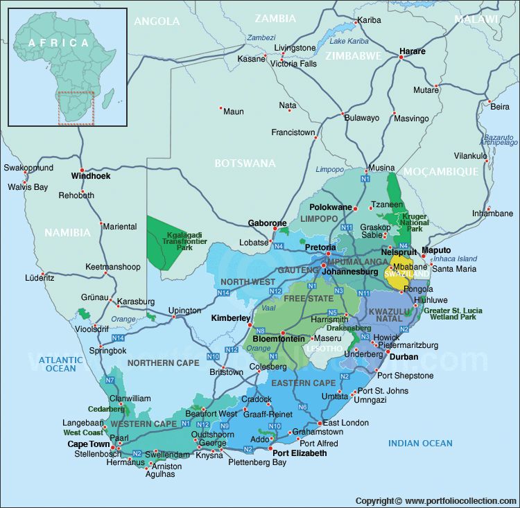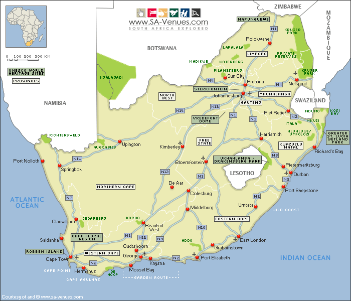 With interactive South Africa Map, view regional highways maps, road situations, transportation, lodging guide, geographical map, physical maps and more information. On South Africa Map, you can view all states, regions, cities, towns, districts, avenues, streets and popular centers' satellite, sketch and terrain maps.