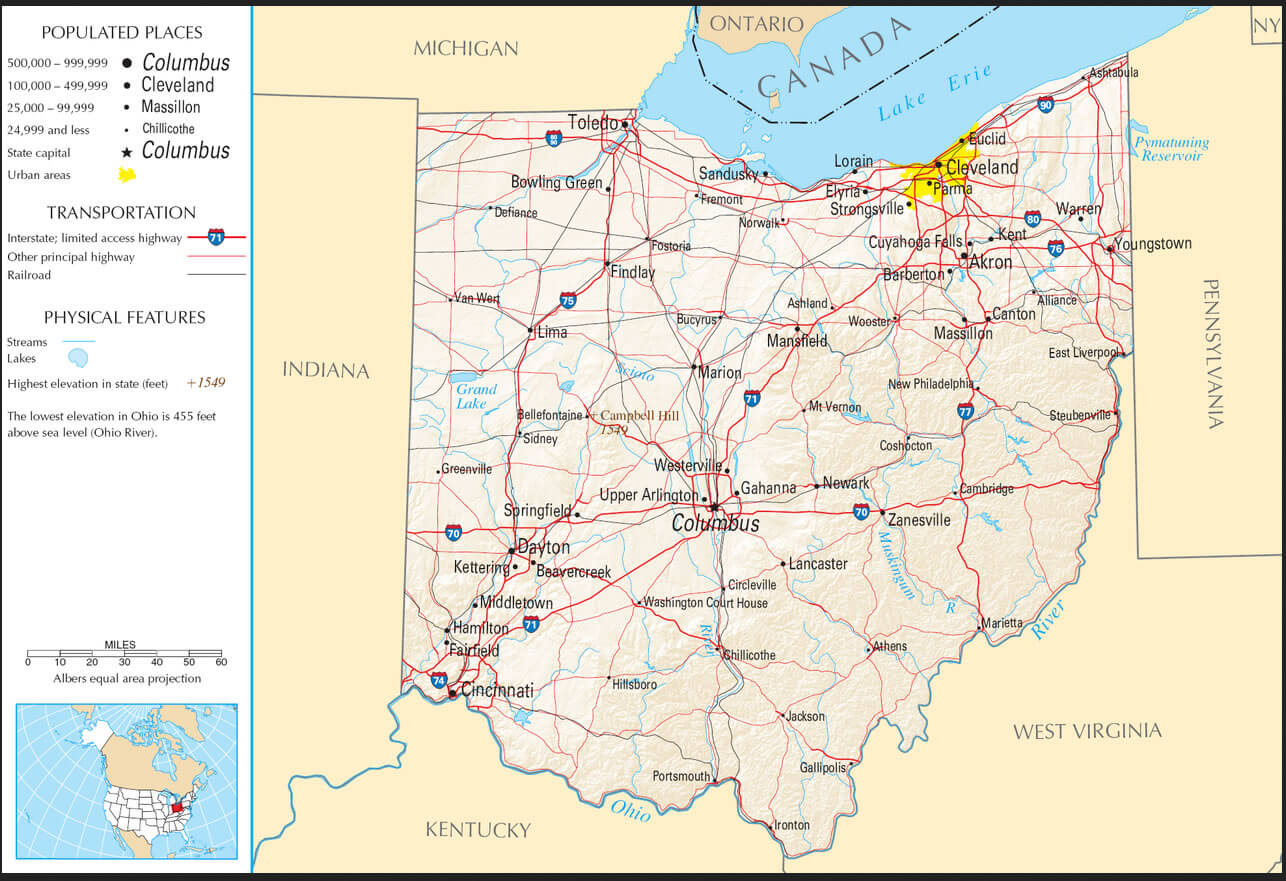 Ohio has the nation's 10th largest highway network, and is within a one-day drive of 50% of North America's population and 70% of North America's manufacturing capacity. To the north, Lake Erie gives Ohio 312 miles (502 km) of coastline, which allows for numerous cargo ports.