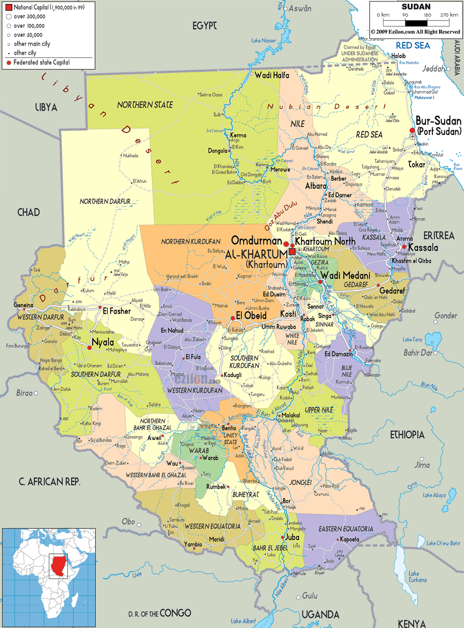 Sudan has a population of 30,894,000 people, Sudan's capital city is Khartoum and largest city Omdurman.