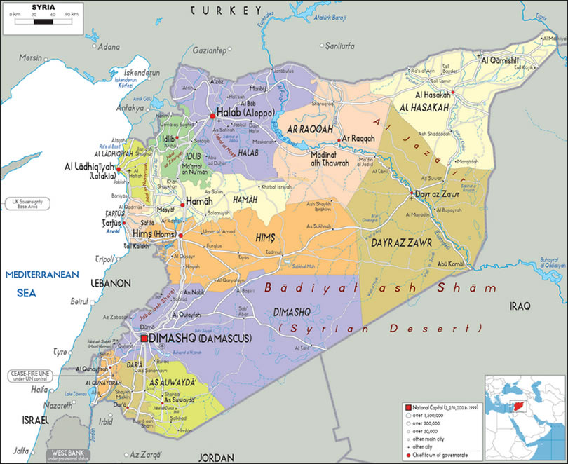 Syria has a population of 22,530,746 people, Syria's capital city is Damascus and largest city Aleppo.