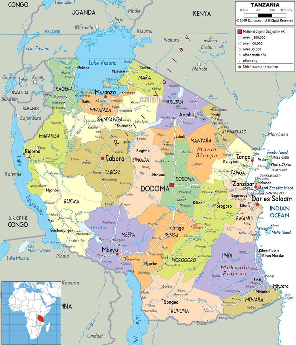 Tanzania has a population of 44,929,002 people, Tanzania's capital city is Dodoma and largest city Dar es Salaam.