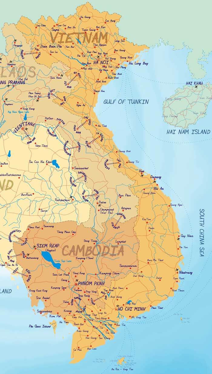 vietnam map cambodia laos