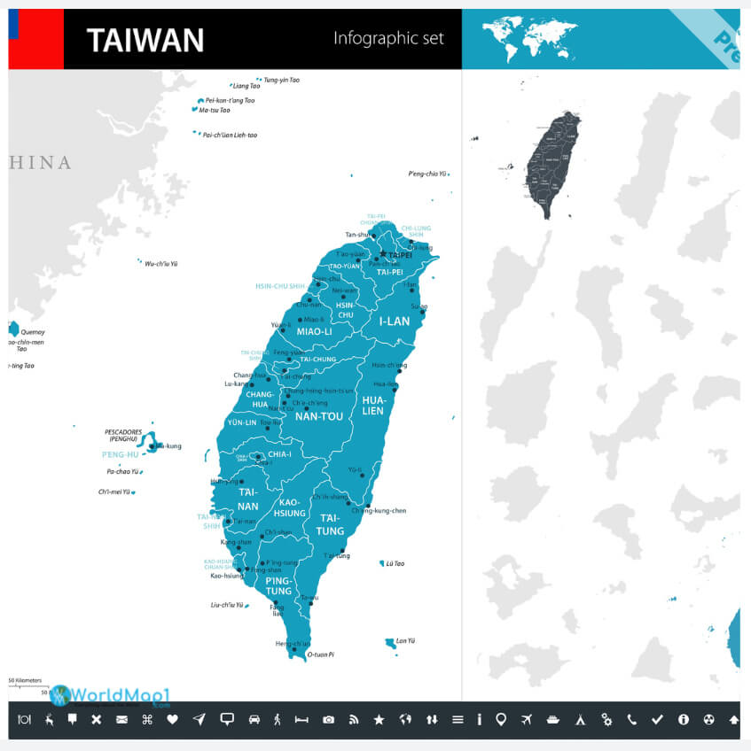 Taiwan is a small Island country in Asia and is located in Southeast Asia. Taiwan lies between China and Japan, but it is currently not recognised as an official country in the World, as it is claimed by the Republic of China (ROC).
