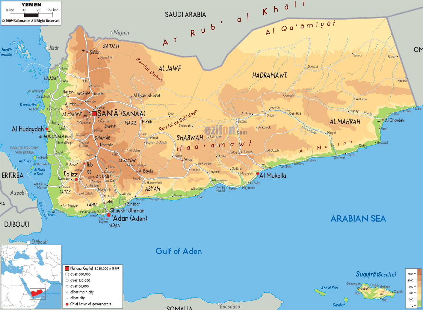 Yemen has a population of 25,130,000 people, Yemen's capital city is Sanaa and largest city Sanaa.