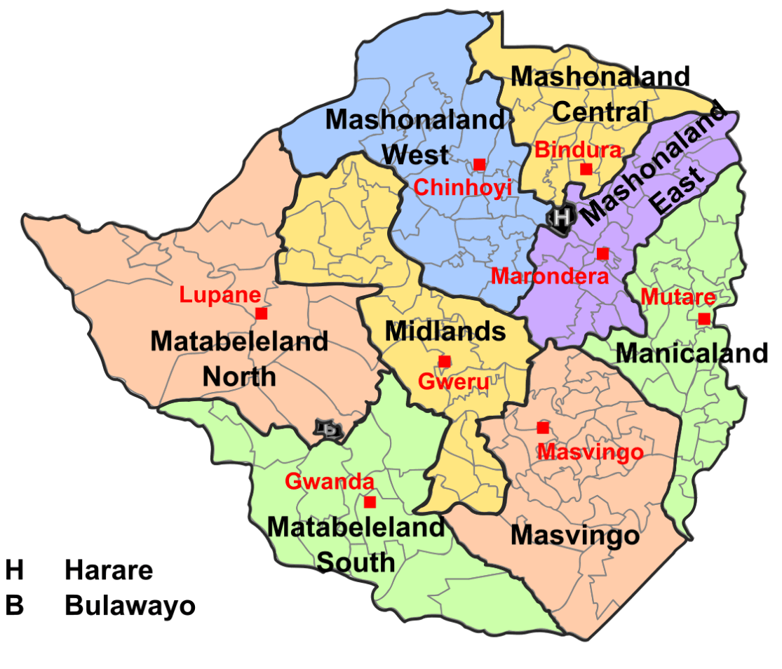 administrative divisions map of zimbabwe