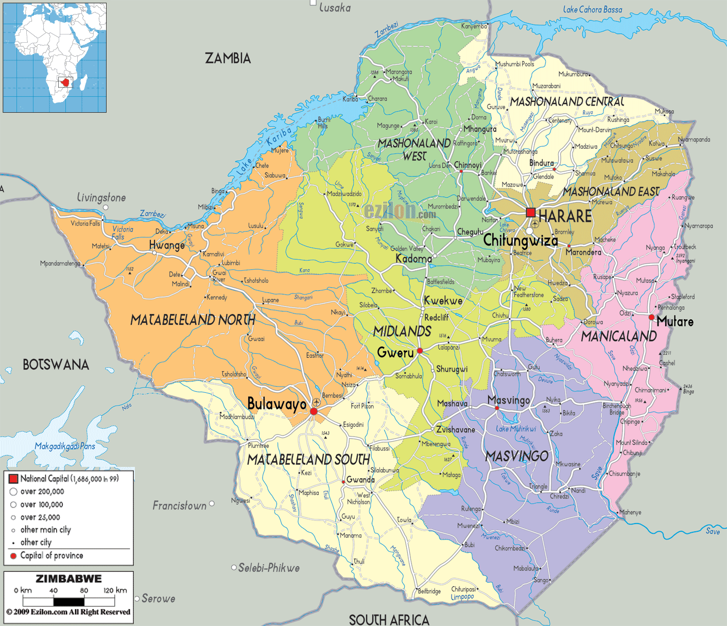 ZIMBABWE POLITICAL MAP