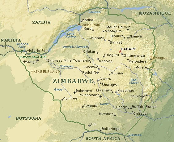 ZIMBABWE MAP HARARE