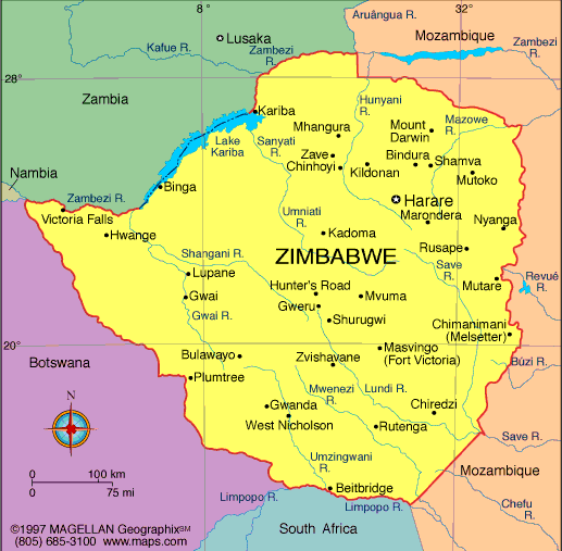 MAP OF ZIMBABWE AFRICA